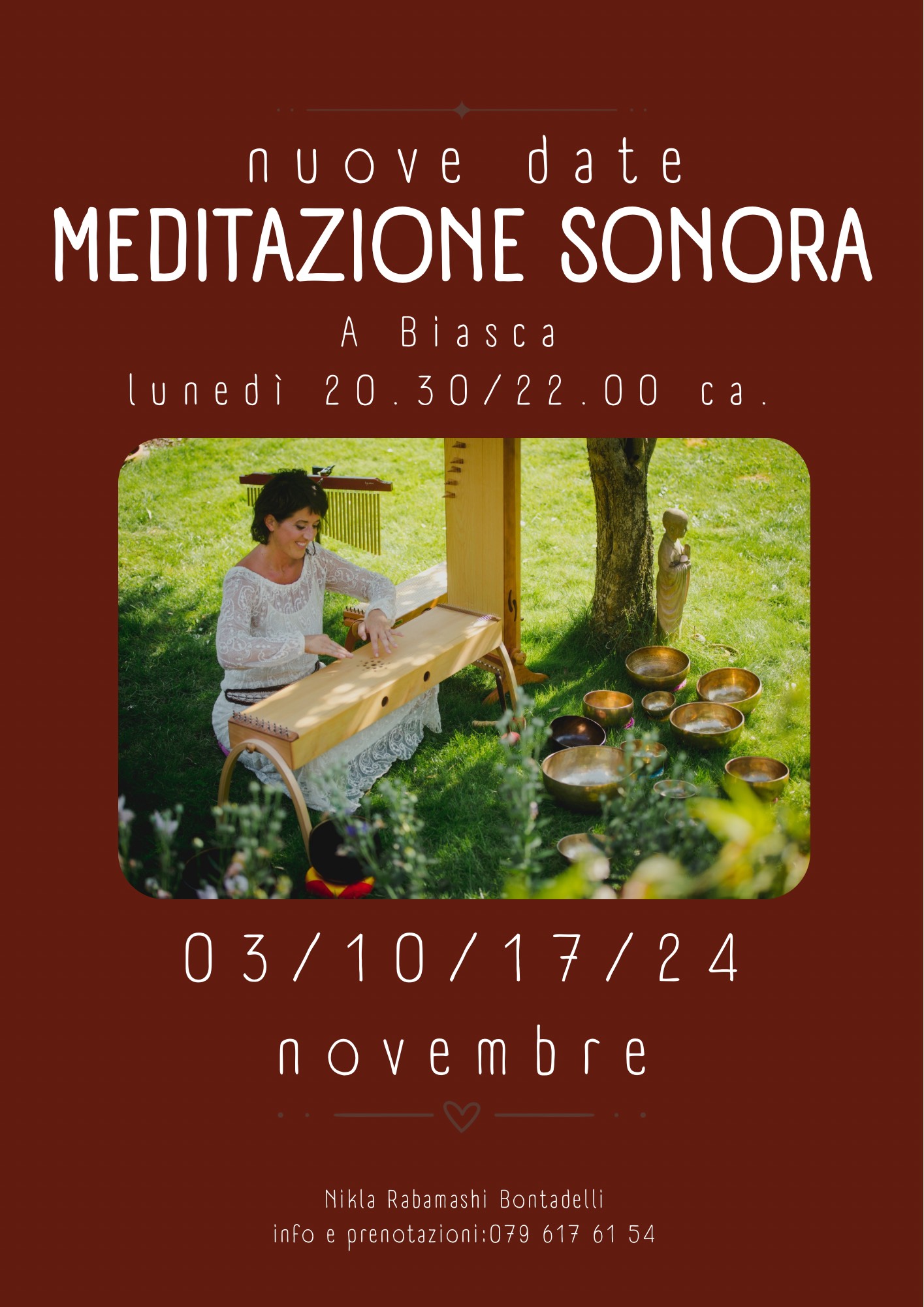 Meditazione sonora + Aggiungi a Google Calendar + Esporta iCal Data 24 Nov 2025 Ora 20:30 - 22:00 Luogo Biasca Stradone vecchio sud 1, 6710 Biasca Categoria Meditazione Condividi questo evento